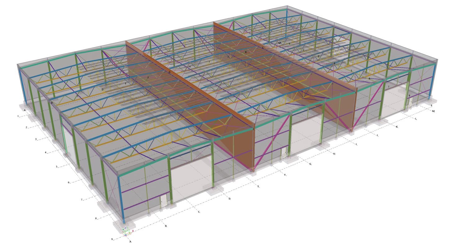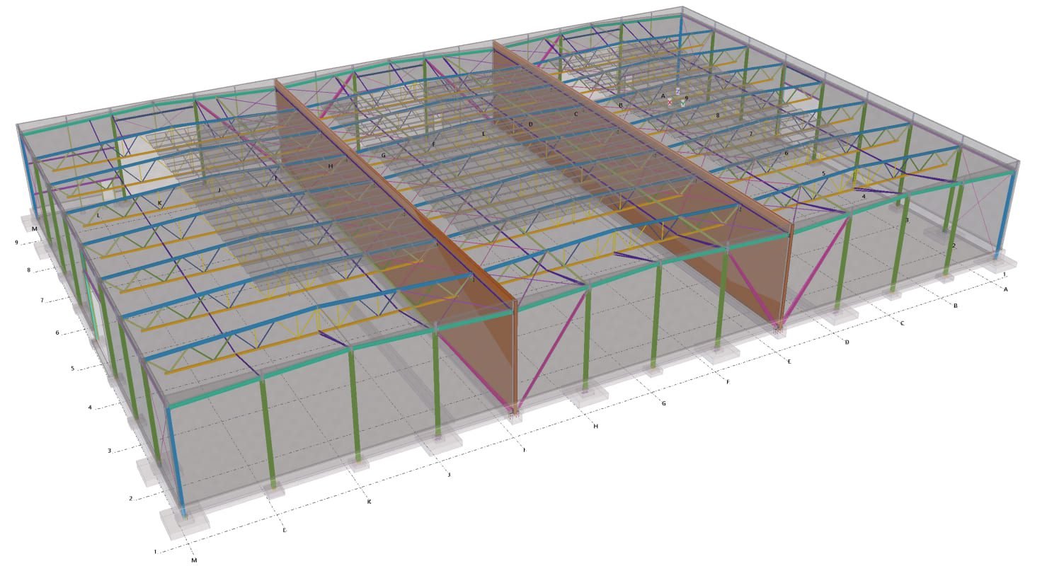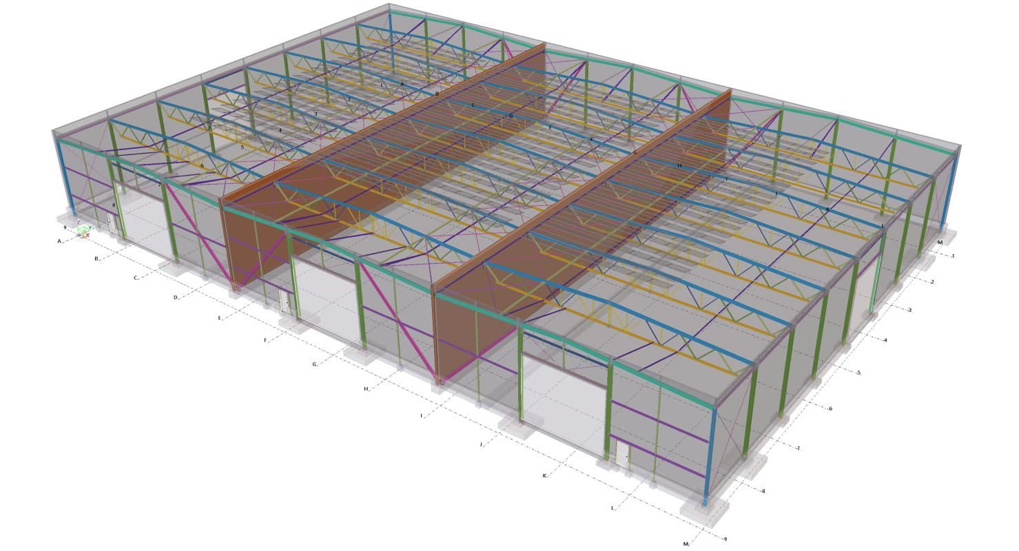 Designed by MAXWELL in 2025, this Industrial project highlights our design approach in Norway. Measuring 76m x 33.3m x 11.5m, the project incorporates Connection FEM design, Full FEM design, Production drawings, Tekla modelling to achieve the result.