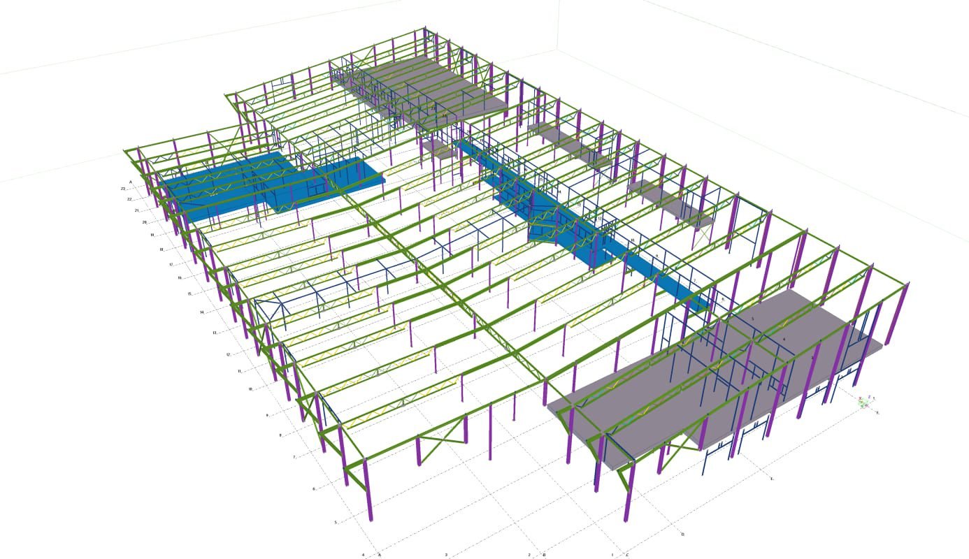 Designed by MAXWELL in 2025, this Industrial project highlights our design approach in Norway. Measuring 53m x 24m x 8.5m, the project incorporates Connection FEM design, Full FEM design, Production drawings, Tekla modelling to achieve the result.