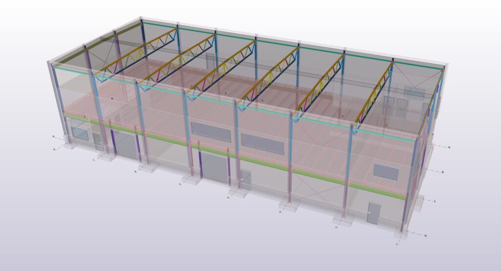 Designed by MAXWELL in 2025, this Industrial project highlights our design approach in Norway. Measuring 55m x 26m x 8.5m, the project incorporates Connection FEM design, Full FEM design, Production drawings, Tekla modelling to achieve the result.