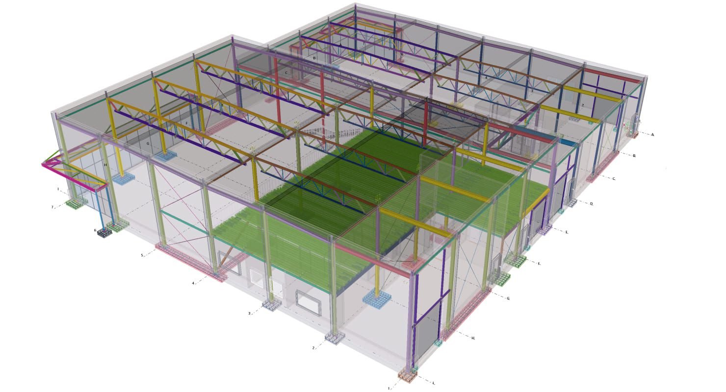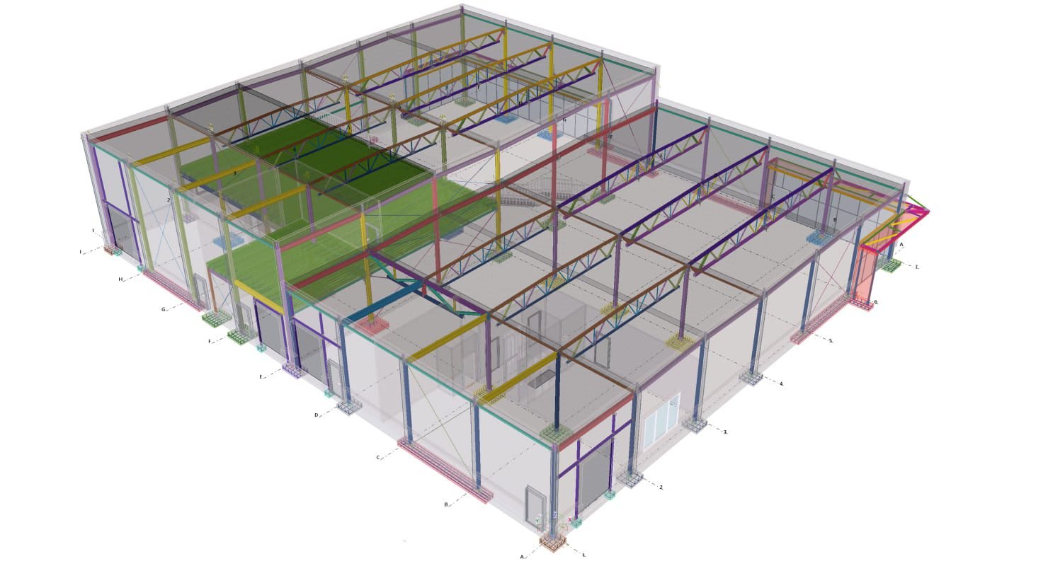 Designed by MAXWELL in 2025, this Industrial project highlights our design approach in Norway. Measuring 55m x 26m x 8.5m, the project incorporates Connection FEM design, Full FEM design, Production drawings, Tekla modelling to achieve the result.