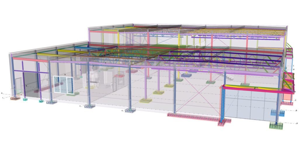 Designed by MAXWELL in 2025, this Industrial project highlights our design approach in Norway. Measuring 76m x 33.3m x 11.5m, the project incorporates Connection FEM design, Full FEM design, Production drawings, Tekla modelling to achieve the result.