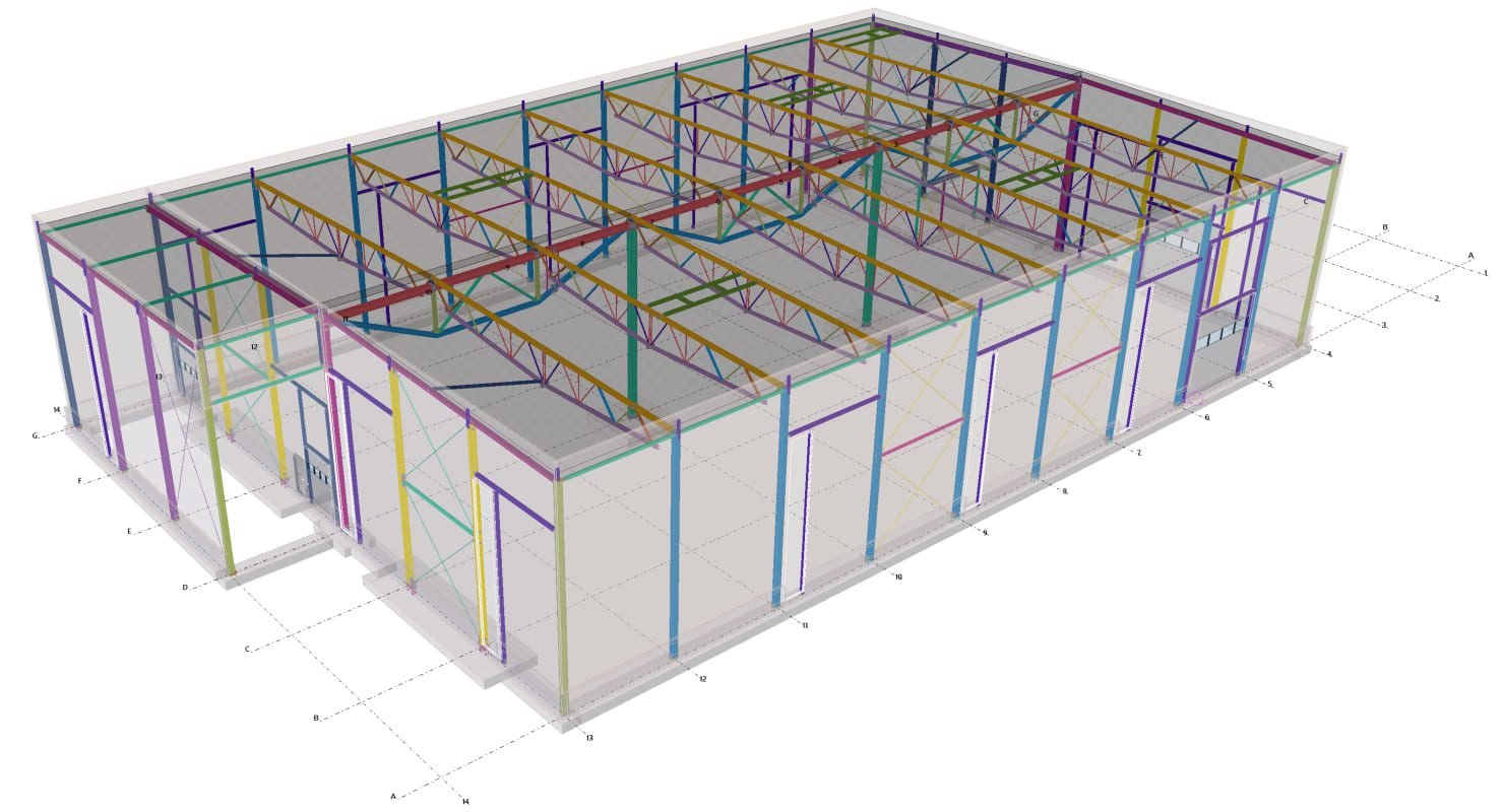 Designed by MAXWELL in 2025, this Industrial project highlights our design approach in Norway. Measuring 76m x 33.3m x 11.5m, the project incorporates Connection FEM design, Full FEM design, Production drawings, Tekla modelling to achieve the result.