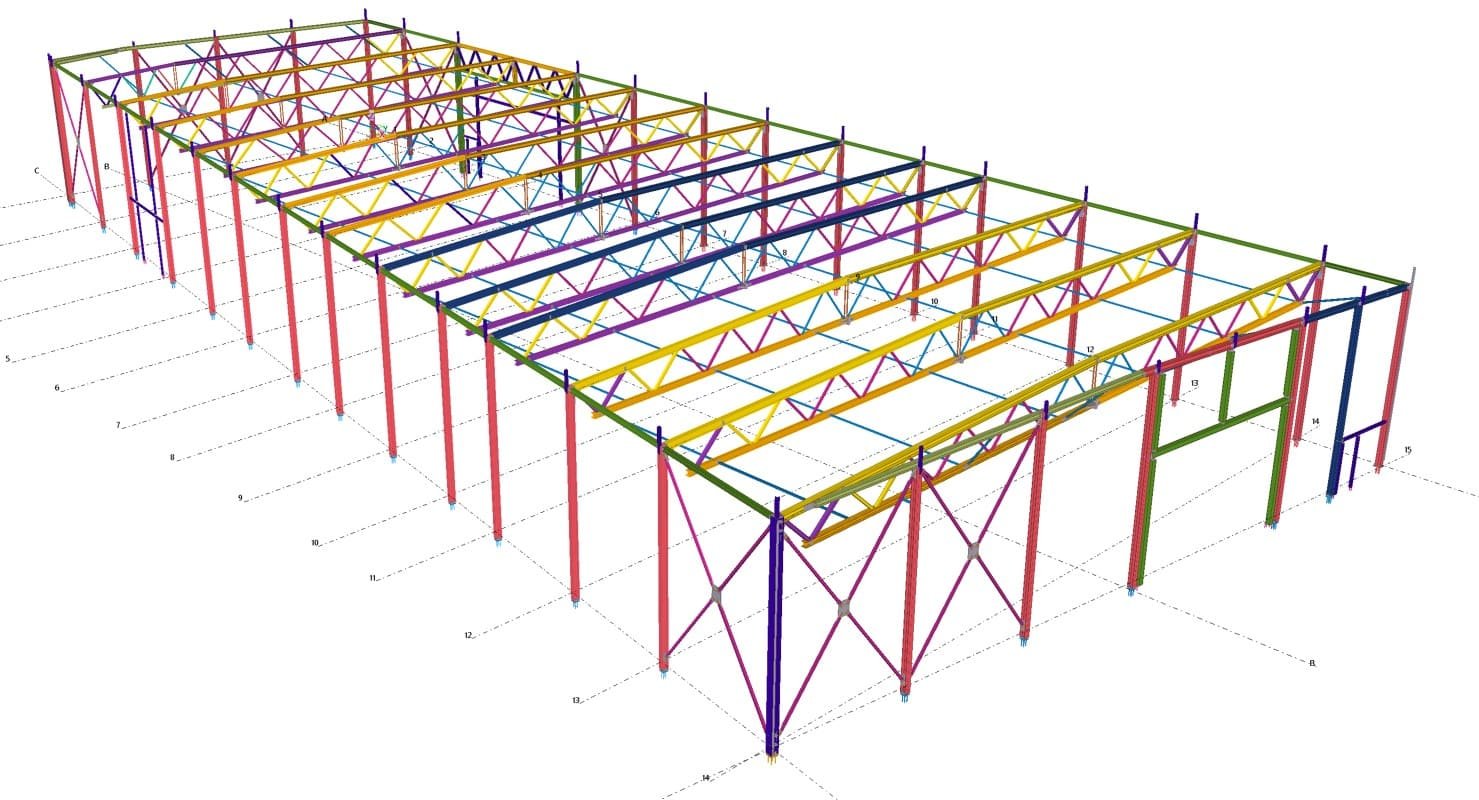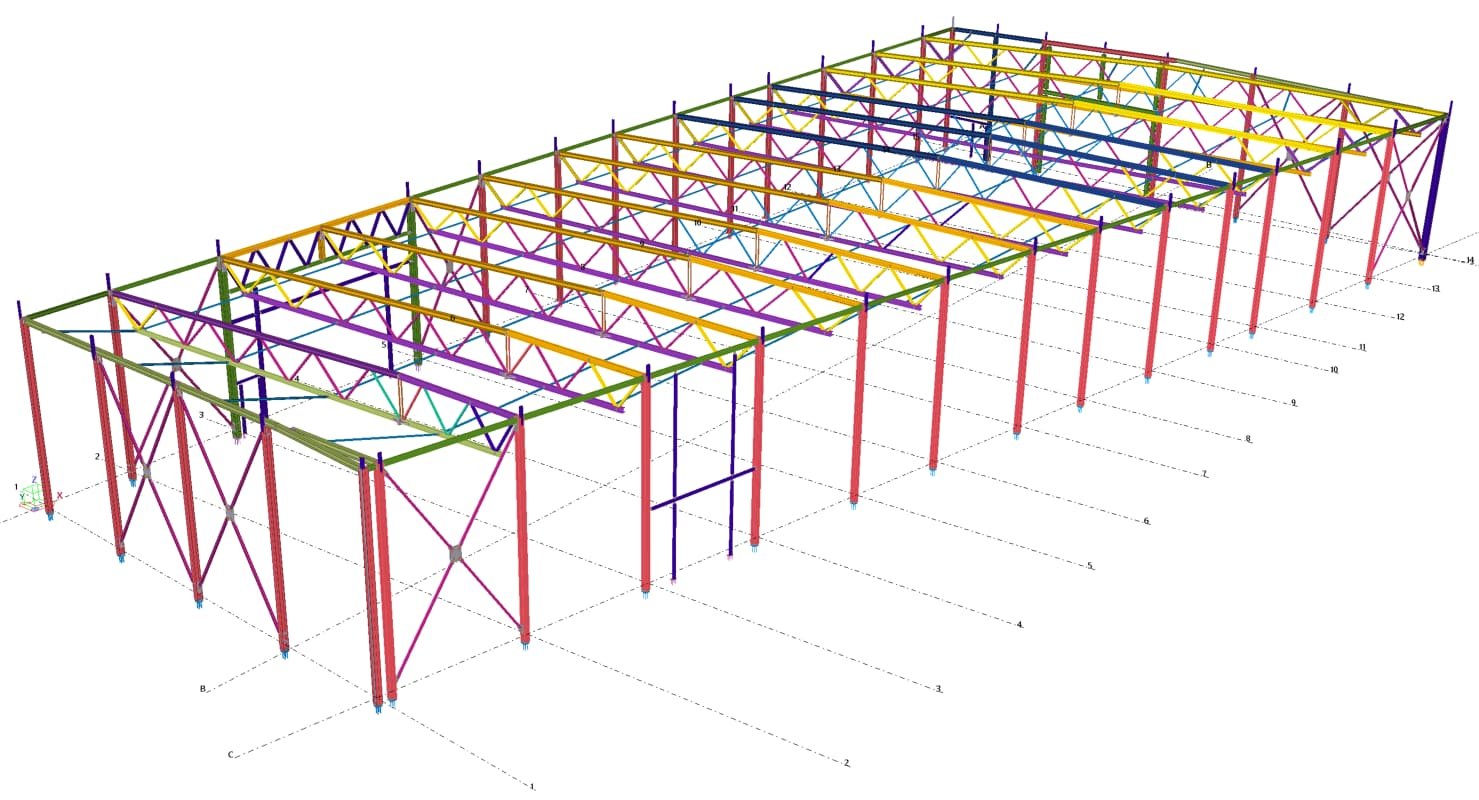 Designed by MAXWELL in 2025, this Industrial project highlights our design approach in Norway. Measuring 76m x 33.3m x 11.5m, the project incorporates Connection FEM design, Full FEM design, Production drawings, Tekla modelling to achieve the result.