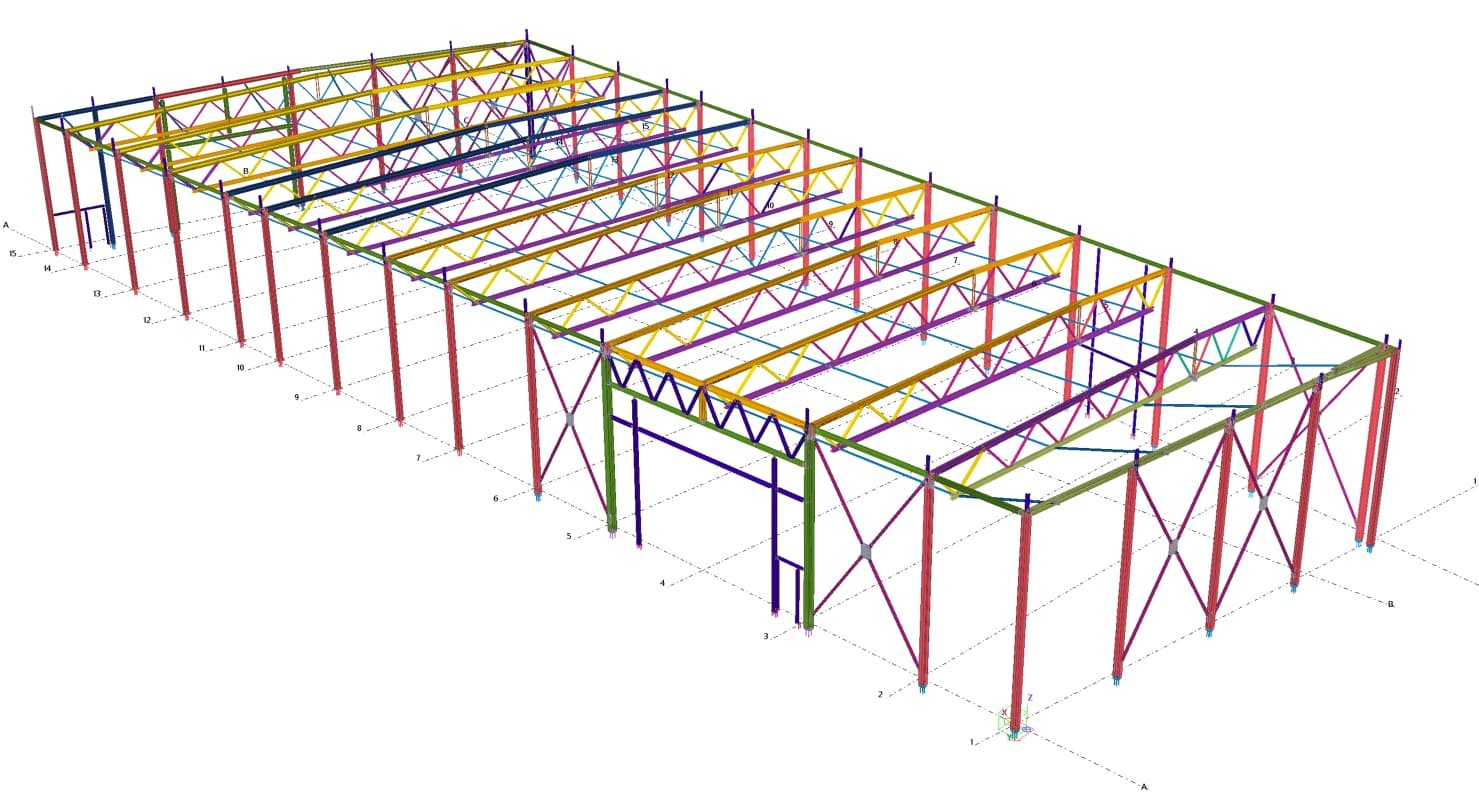 Designed by MAXWELL in 2025, this Industrial project highlights our design approach in Norway. Measuring 55m x 26m x 8.5m, the project incorporates Connection FEM design, Full FEM design, Production drawings, Tekla modelling to achieve the result.