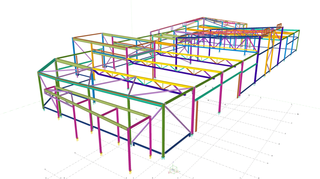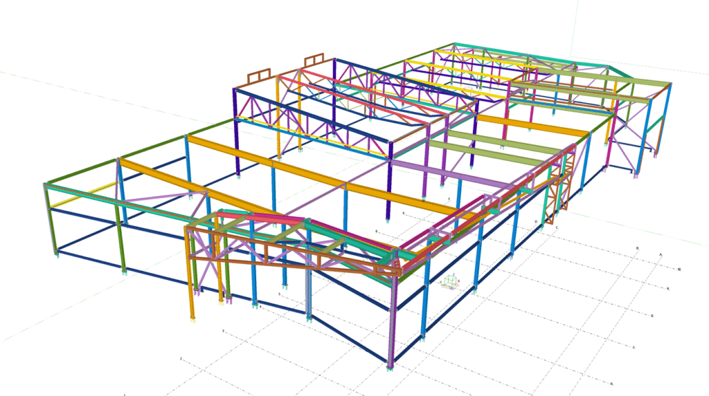 Designed by MAXWELL in 2025, this Industrial project highlights our design approach in Norway. Measuring 55m x 26m x 8.5m, the project incorporates Connection FEM design, Full FEM design, Production drawings, Tekla modelling to achieve the result.