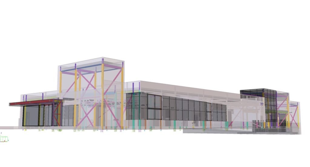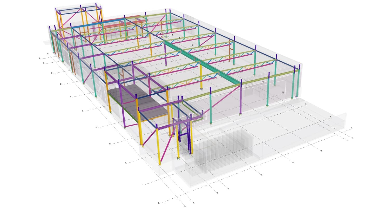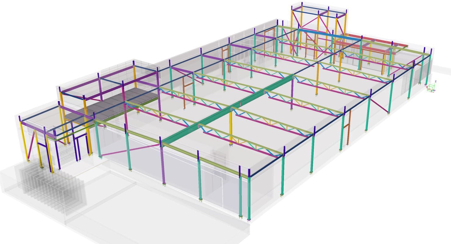 Designed by MAXWELL in 2025, this Industrial project highlights our design approach in Norway. Measuring 53m x 24m x 8.5m, the project incorporates Connection FEM design, Full FEM design, Production drawings, Tekla modelling to achieve the result.