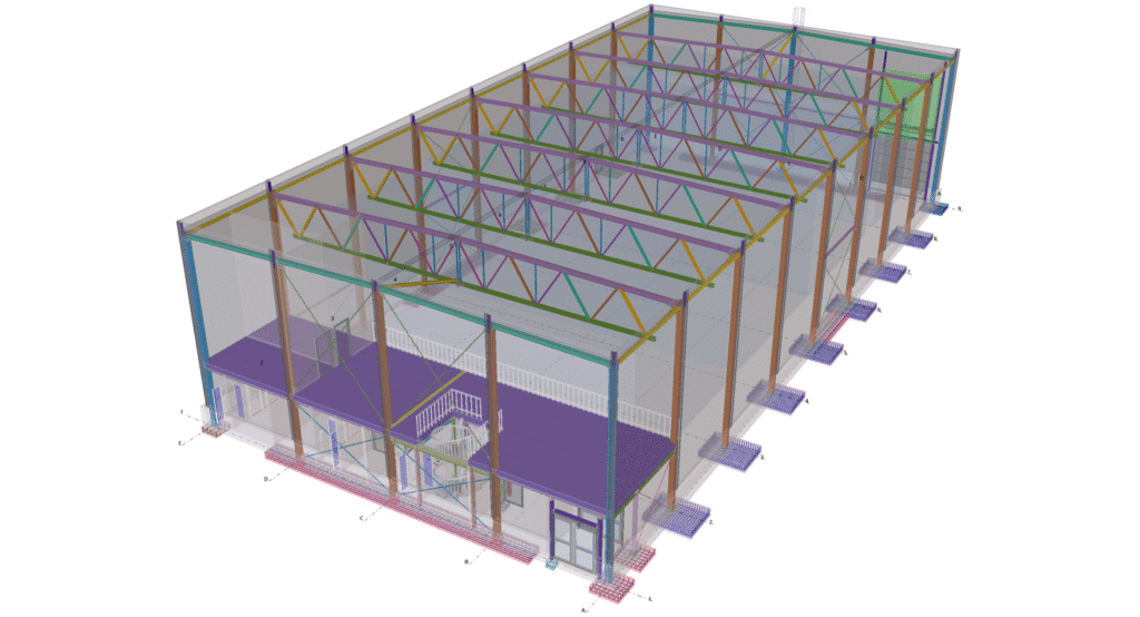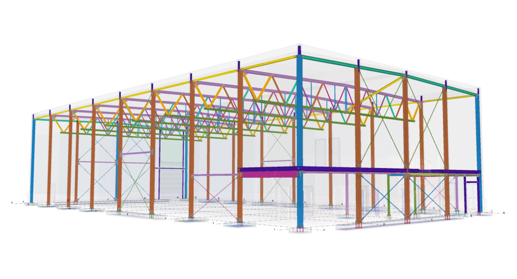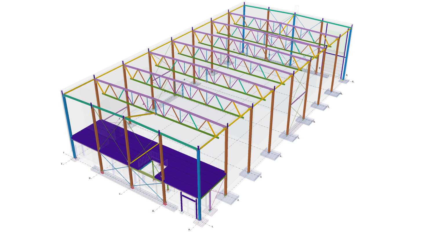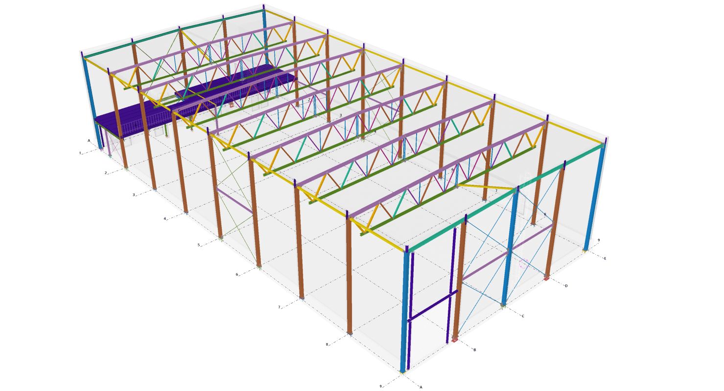 Designed by MAXWELL in 2025, this Industrial project highlights our design approach in Norway. Measuring 55m x 26m x 8.5m, the project incorporates Connection FEM design, Full FEM design, Production drawings, Tekla modelling to achieve the result.