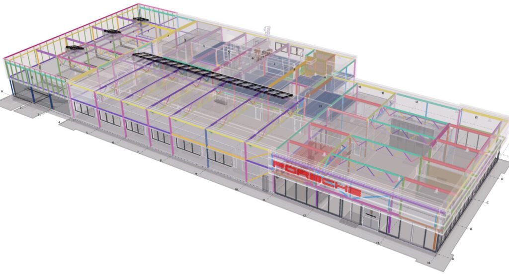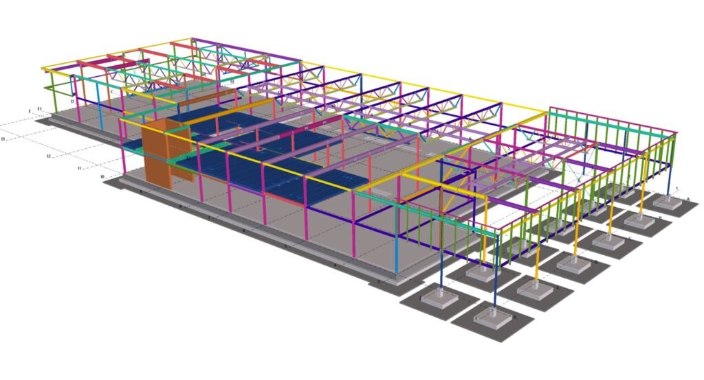 Designed by MAXWELL in 2025, this Industrial project highlights our design approach in Norway. Measuring 55m x 26m x 8.5m, the project incorporates Connection FEM design, Full FEM design, Production drawings, Tekla modelling to achieve the result.
