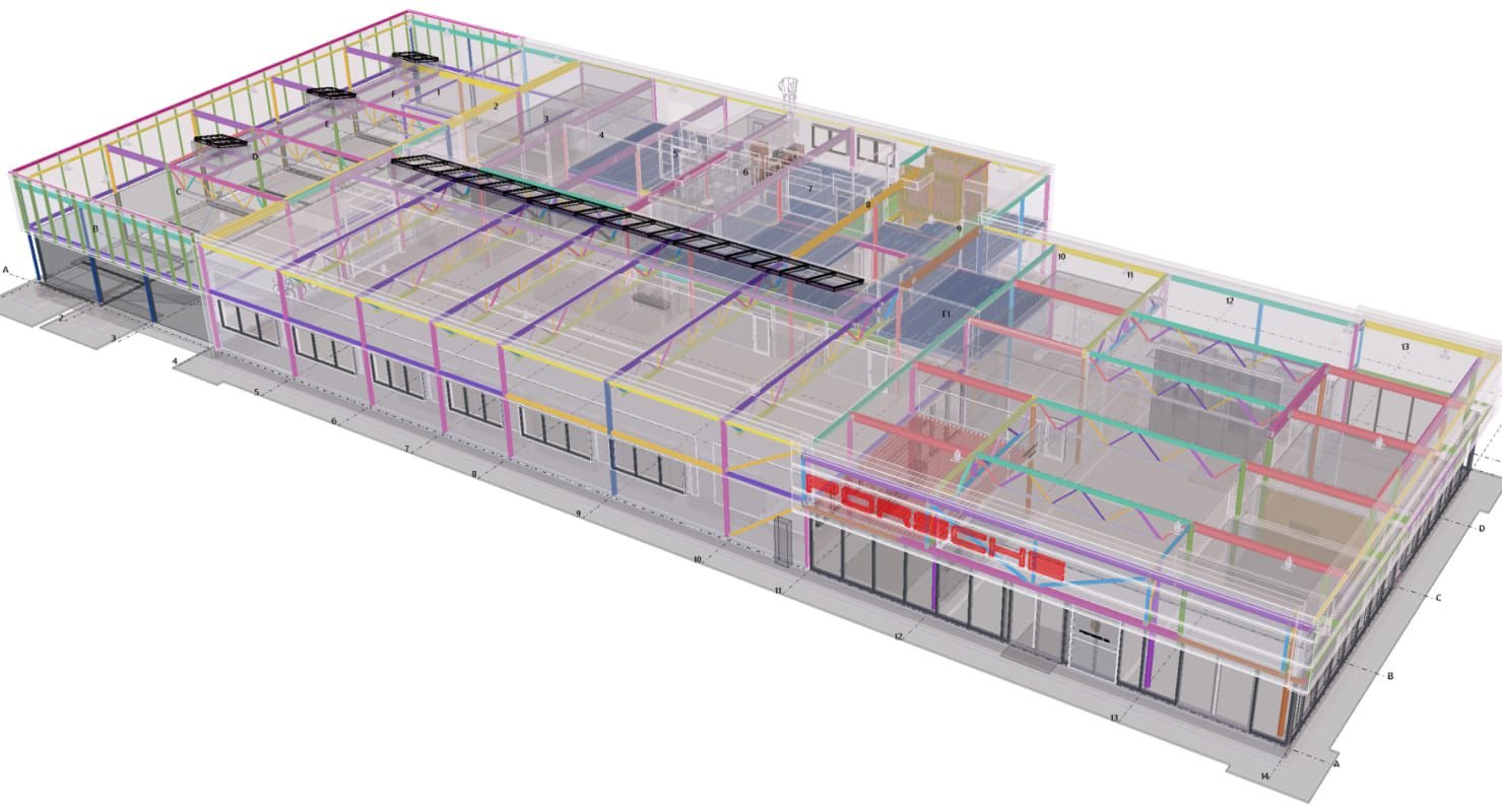 Designed by MAXWELL in 2025, this Industrial project highlights our design approach in Norway. Measuring 76m x 33.3m x 11.5m, the project incorporates Connection FEM design, Full FEM design, Production drawings, Tekla modelling to achieve the result.