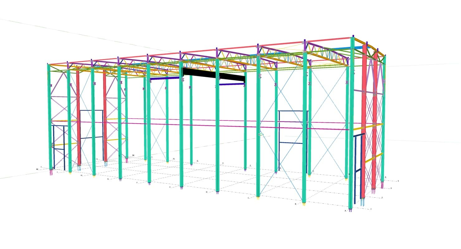Designed by MAXWELL in 2025, this Industrial project highlights our design approach in Norway. Measuring 55m x 26m x 8.5m, the project incorporates Connection FEM design, Full FEM design, Production drawings, Tekla modelling to achieve the result.