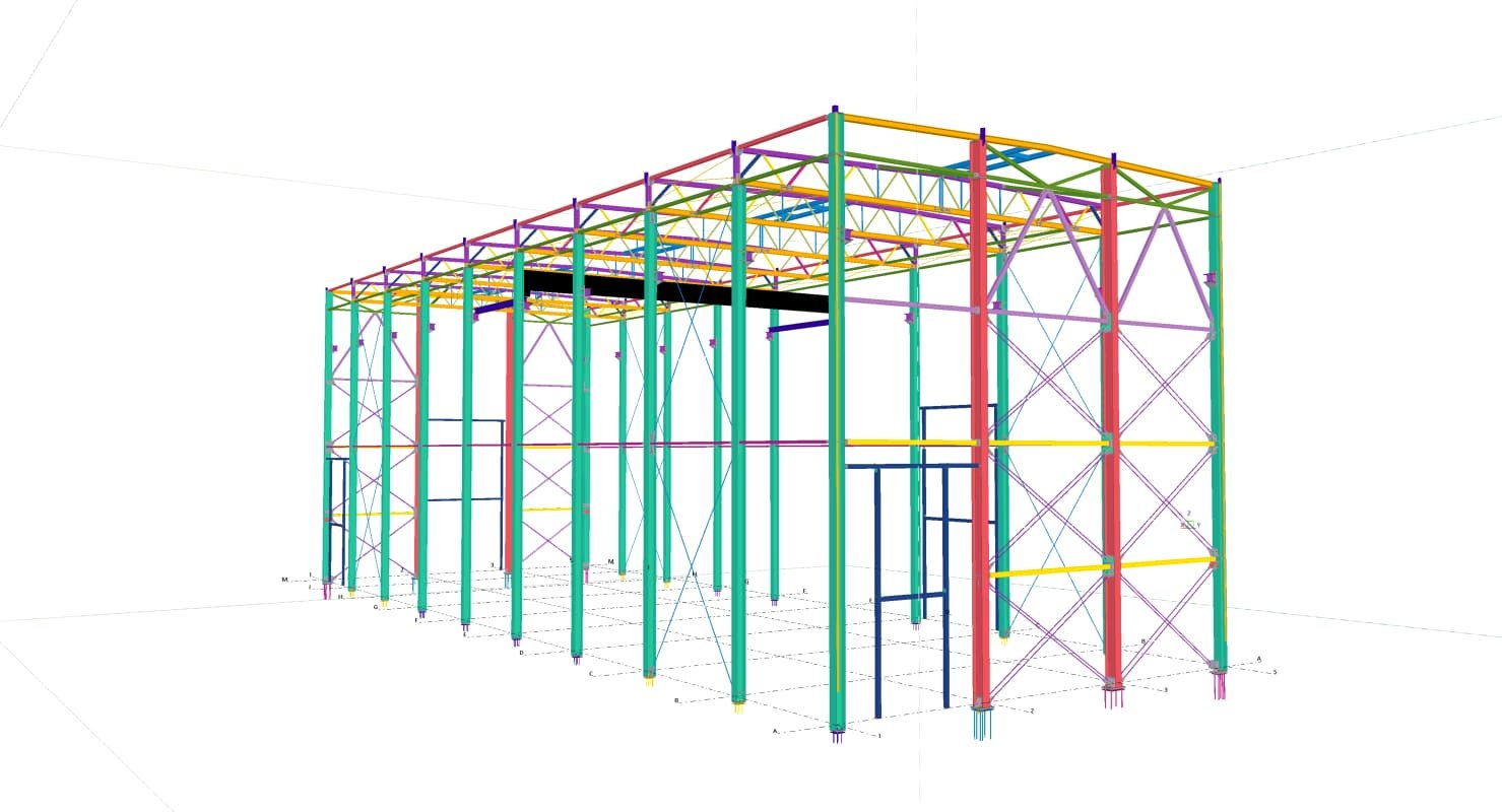 Designed by MAXWELL in 2025, this Industrial project highlights our design approach in Norway. Measuring 76m x 33.3m x 11.5m, the project incorporates Connection FEM design, Full FEM design, Production drawings, Tekla modelling to achieve the result.