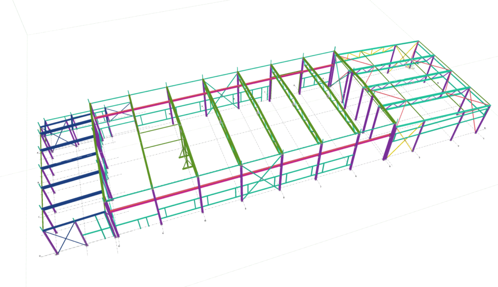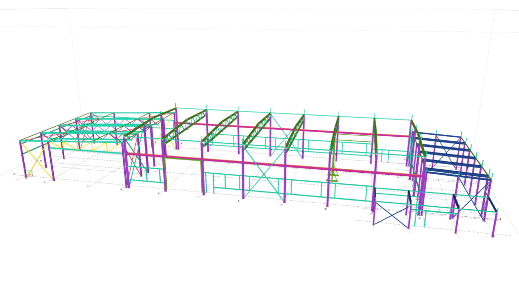 Designed by MAXWELL in 2025, this Industrial project highlights our design approach in Norway. Measuring 55m x 26m x 8.5m, the project incorporates Connection FEM design, Full FEM design, Production drawings, Tekla modelling to achieve the result.