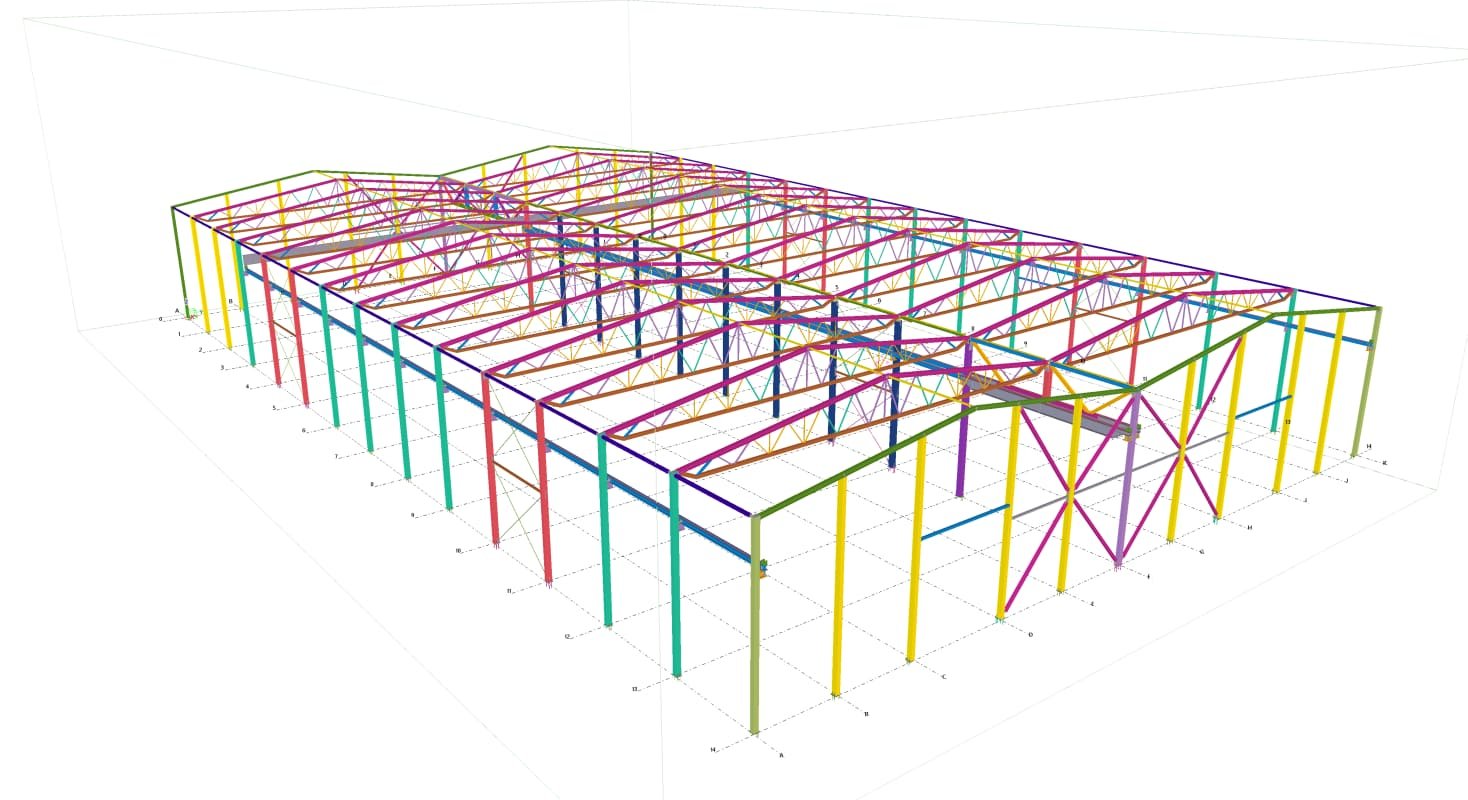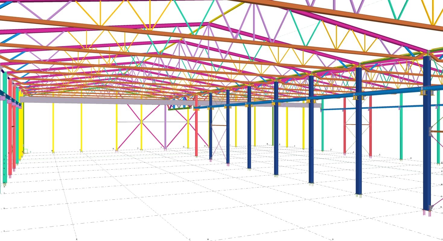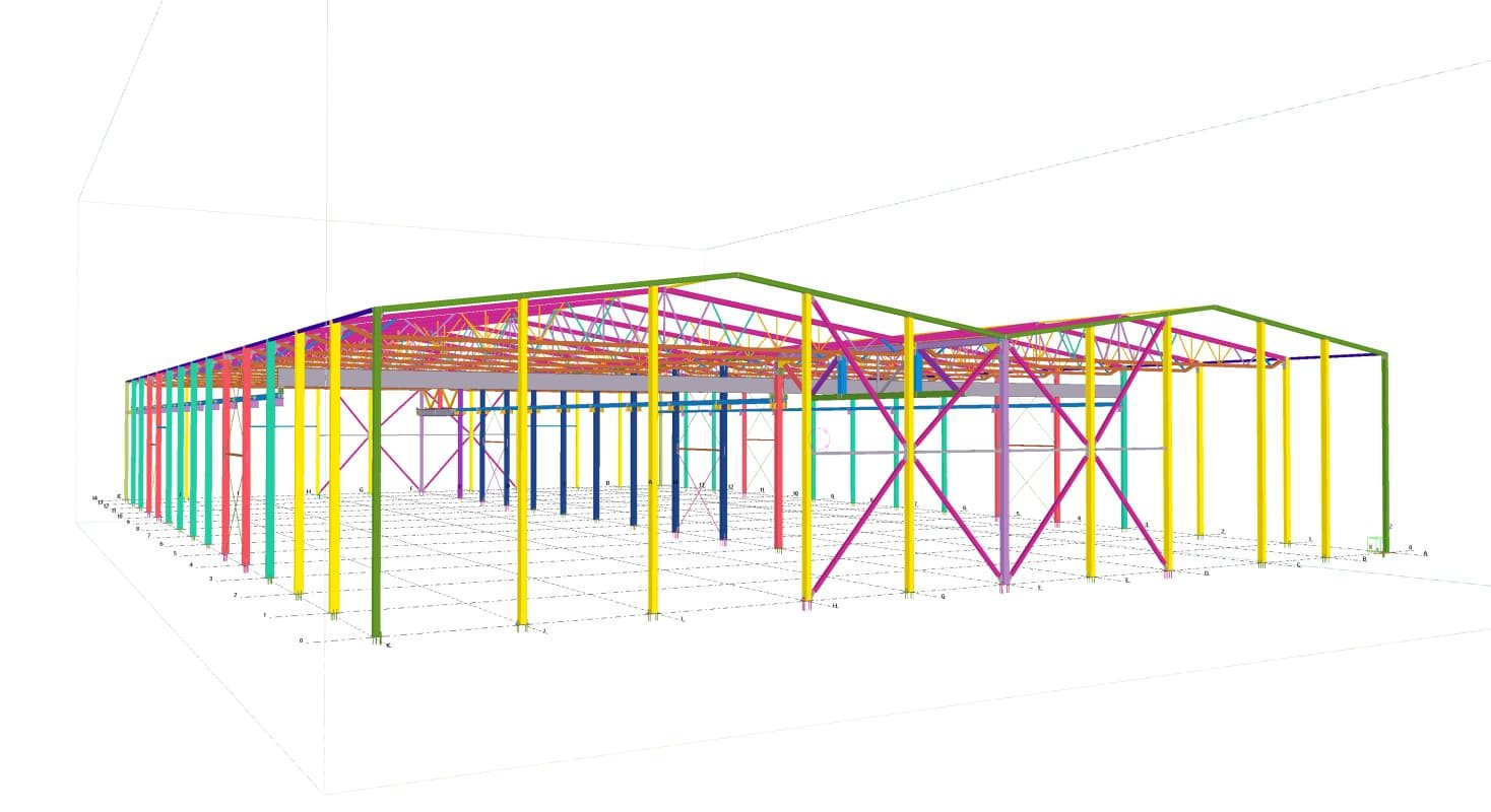 Designed by MAXWELL in 2025, this Industrial project highlights our design approach in Norway. Measuring 55m x 26m x 8.5m, the project incorporates Connection FEM design, Full FEM design, Production drawings, Tekla modelling to achieve the result.