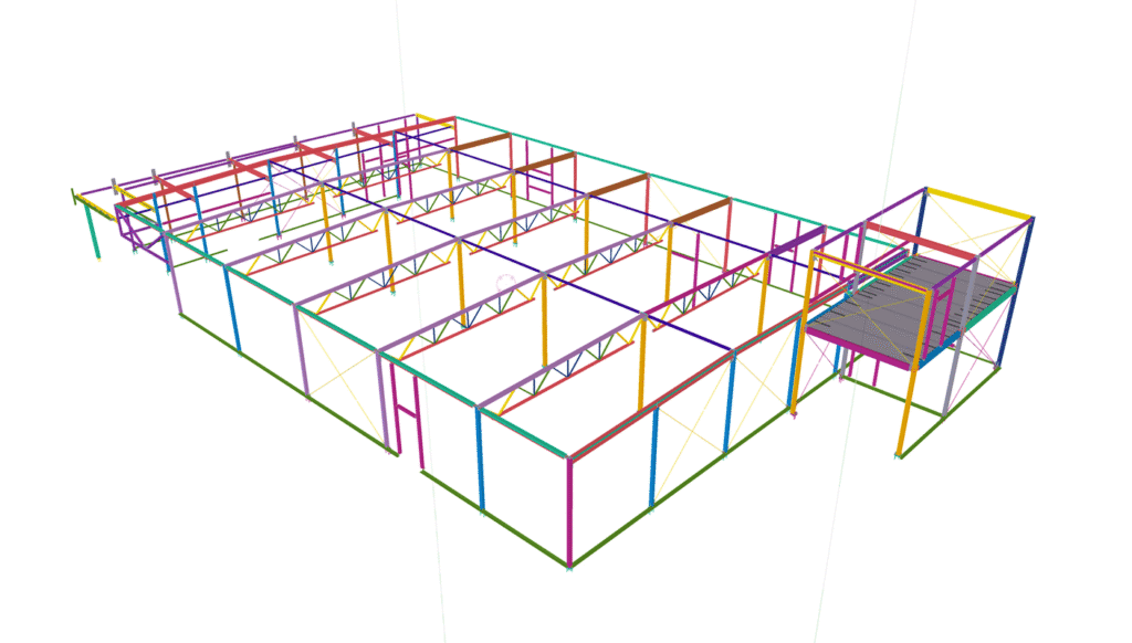 Designed by MAXWELL in 2025, this Industrial project highlights our design approach in Norway. Measuring 55m x 26m x 8.5m, the project incorporates Connection FEM design, Full FEM design, Production drawings, Tekla modelling to achieve the result.