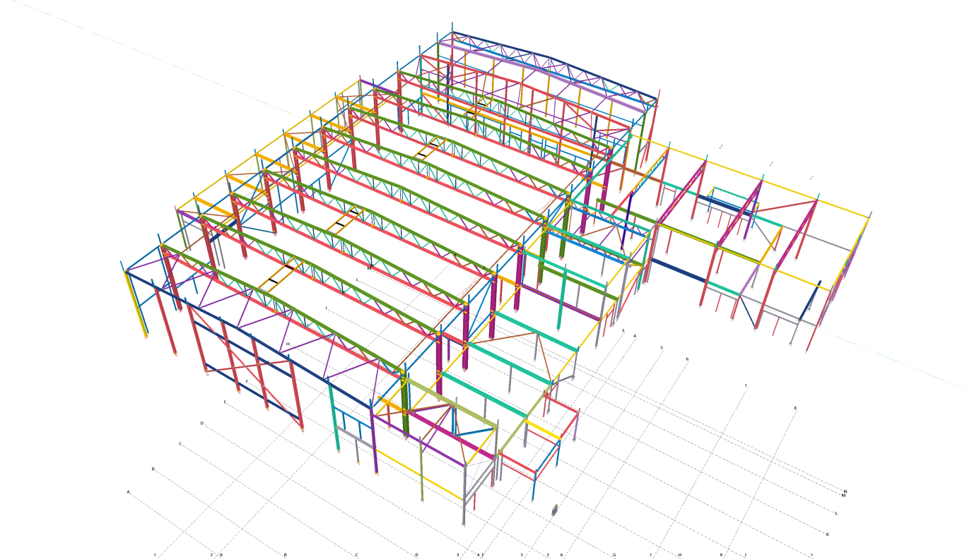 Designed by MAXWELL in 2025, this Industrial project highlights our design approach in Norway. Measuring 55m x 26m x 8.5m, the project incorporates Connection FEM design, Full FEM design, Production drawings, Tekla modelling to achieve the result.